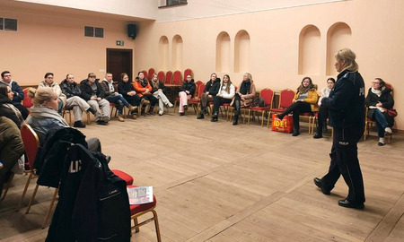 W koronowskim Centrum Kultury Synagoga policjanci z komisariatu w Koronowie spotkali #się z wolontariuszami 34. Finału Wielkiej Orkiestry Świątecznej Pomocy. Funkcjonariusze omówili z nimi podstawowe zasady bezpieczeństwa dotyczące między innymi sposobu prowadzenia zbiórki pieniędzy czy wyboru miejsc do kwestowania.
