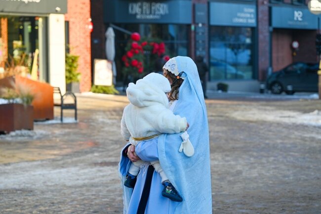 W roli Świętej Rodziny uczestnicy zobaczyli Zofię i Krzysztofa Bukowieckich z rocznym synkiem Jurkiem. – Jesteśmy na orszaku każdego roku, ze względu na udział mojego męża jako anioła na szczudłach, ale też po to, żeby celebrować ten dzień i spotkać znajome twarze. Dzięki temu czujemy jedność z Kościołem i wyjątkowość tego dnia. Wyjście na orszak stało się już tradycją w naszej rodzinie i – mam nadzieję – nią pozostanie. To duży zaszczyt, że przypadło nam odegranie Świętej Rodziny. Na pewno czymś niesamowitym było zobaczenie orszaku z innej perspektywy niż w latach poprzednich, bo w bardzo wyjątkowej dla mnie roli. Maryja jest mi bliska szczególnie w moim nowym, macierzyńskim życiu. Wejście w jej rolę jest dla mnie poruszającym wyzwaniem – powiedziała Zofia.