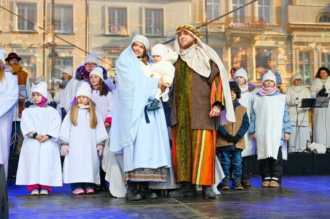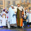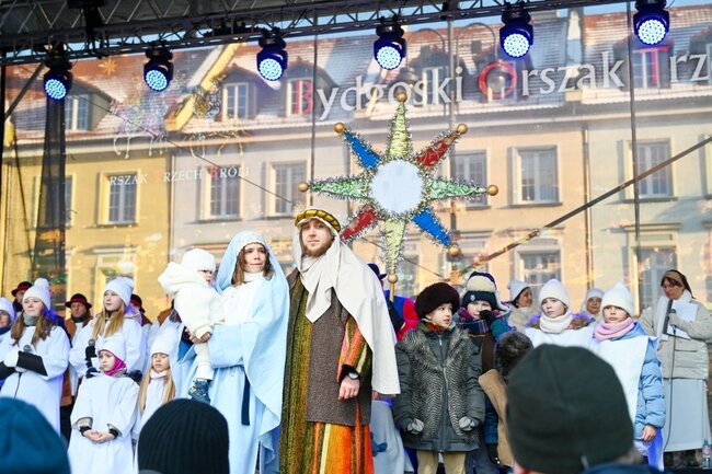 Po zakończeniu liturgii barwny korowód wyruszył w stronę Starego Rynku, by tam, tradycyjnie, oddać pokłon Jezusowi. Przy śpiewie kolęd, animowanych przez chór Diakonii Muzycznej Ruchu Światło-Życie oraz dzieci z Młodzieżowego Domu Kultury nr 2 w Bydgoszczy, Nowonarodzonego przywitali pasterze. Po nich Kacper, Melchior i Baltazar złożyli dary, oddając cześć Dzieciątku.