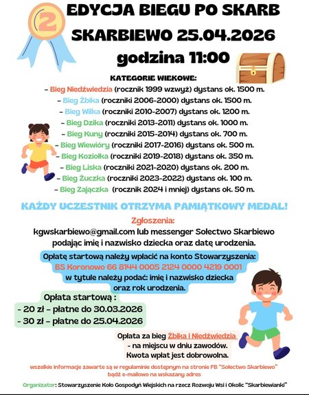 25 kwietnia 2026 r. w Skarbiewie odbędzie się II edycja Biegu po Skarb.