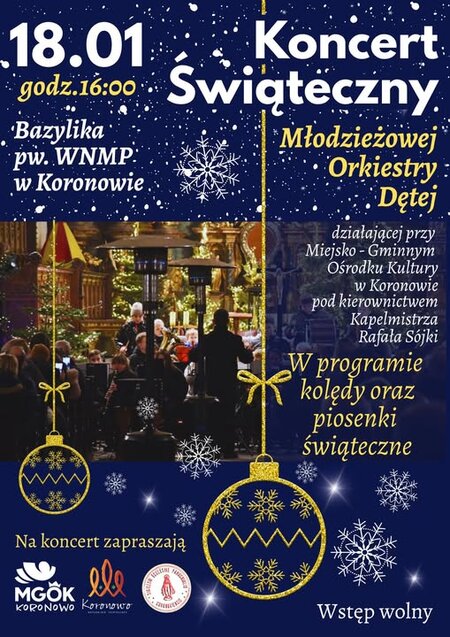 18 stycznia 2026 r. odbędzie się koncert świąteczny Młodzieżowej Orkiestry Dętej działającej przy MGOK w Koronowie. Szczegóły na plakacie.