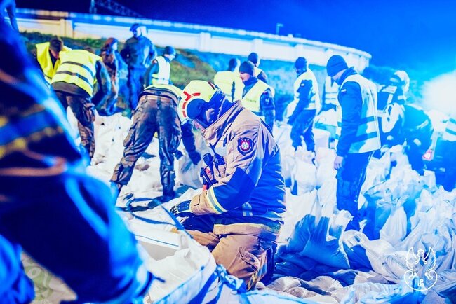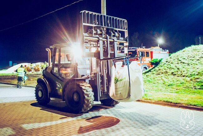 Nocne ćwiczenia przeciwpowodziowe. Współdziałanie wielu służb