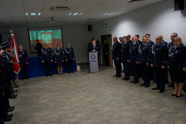 - (…) Mieszkańcy naszego województwa oczekują od policji profesjonalizmu, skuteczności, a także empatii. Wasza obecność w szeregach Policji Województwa Kujawsko-Pomorskiego jest gwarancją, że nadal możemy z pełnym zaangażowaniem dbać o bezpieczeństwo, porządek publiczny oraz codzienny spokój tych, którzy nam zaufali. To właśnie Wasza służba – podejmowana każdego dnia – będzie realną odpowiedzią na potrzeby lokalnej społeczności. Korzystając z okazji składam szczególne, płynące z głębi serca podziękowania rodzinom i bliskim naszych nowych funkcjonariuszy. To Państwo byli pierwszymi przewodnikami w ich życiu – to w Waszych domach uczyli się szacunku, odpowiedzialności i miłości do Ojczyzny. Dzięki Waszej trosce, wsparciu i wychowaniu w duchu patriotyzmu dziś mogą z dumą stanąć w policyjnym szyku, gotowi nieść pomoc i chronić innych (…).