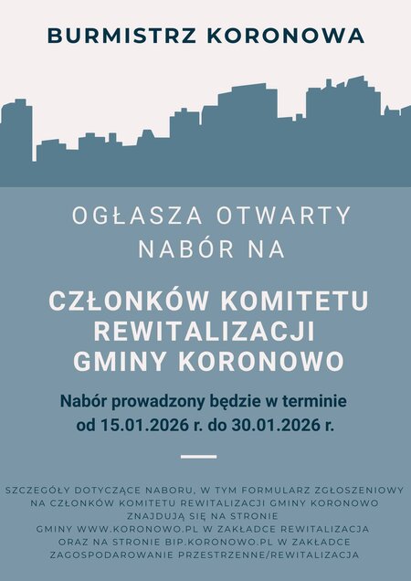 Burmistrz Koronowa ogłasza otwarty nabór kandydatów na członków Komitetu #Rewitalizacji Gminy Koronowo.