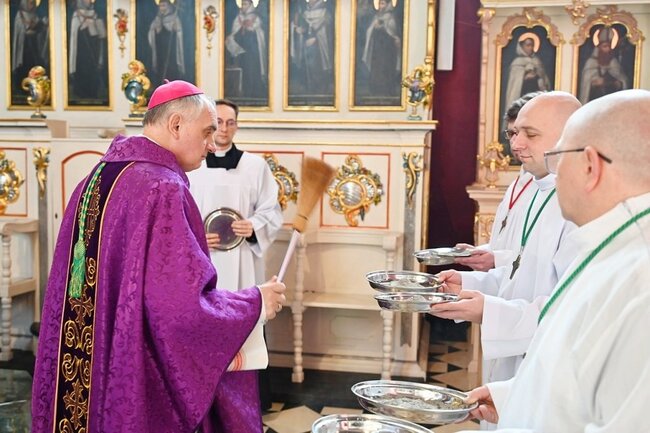 Dyrektor Wydziału Duszpasterstwa Ogólnego Kurii Diecezjalnej, przywołał Ojca Świętego Leona XIV, który zachęca, by powstrzymywać się od słów uderzających, raniących bliźnich. – Zacznijmy rozbrajać nasz język, rezygnując z pochopnych osądów, unikając oszczerstw, mówienia źle o nieobecnych, którzy nie mogą się bronić. Starajmy się nauczyć ważyć słowa, pielęgnować uprzejmość w rodzinie, życiu – zakończył ks. dr Piotr Wachowski. – Po raz kolejny w naszym życiu wchodzimy w okres Wielkiego Postu, otrzymując szansę. W geście posypania głów popiołem mamy odczytać zachętę do nawrócenia. Wraz z wołaniem – „prochem jesteś i w proch się obrócisz” – otrzymujemy zaproszenie: pamiętaj o końcu, dokąd zmierzasz, pamiętaj o życiu wiecznym – dodał biskup bydgoski Krzysztof Włodarczyk.