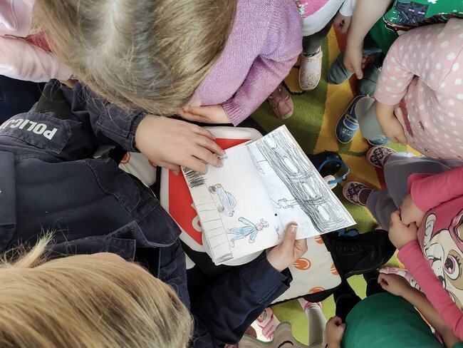- Zabawa z dziećmi "w bezpieczeństwo". Policjanci z wizytą w przedszkolu