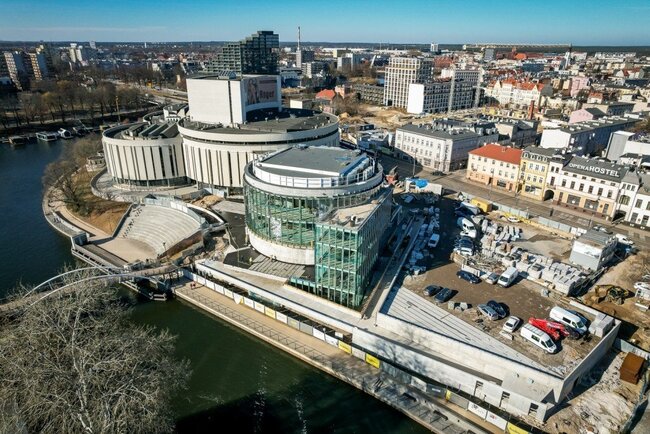 W nowym czterokondygnacyjnym skrzydle kompleksu – tak zwanym czwartym kręgu – oprócz operowej sali kameralnej (z fosą orkiestrową dla siedemdziesięcioosobowego zespołu i widownią na 500 osób), znajdą się przestrzeń wystawiennicza i sala kinowa. Rotunda z tarasem widokowym od strony Brdy, w której trwają obecnie prace wykończeniowe i instalacyjne, ma 6 tys. metrów kwadratowych i kubaturę 40 tys. metrów sześciennych. Powstający jednocześnie bardzo potrzebny w tym miejscu dwupoziomowy podziemny parking – ma być gotowy w połowie tego roku - będzie miał 212 stanowisk postojowych. Wartość inwestycji to ponad 190 mln złotych.