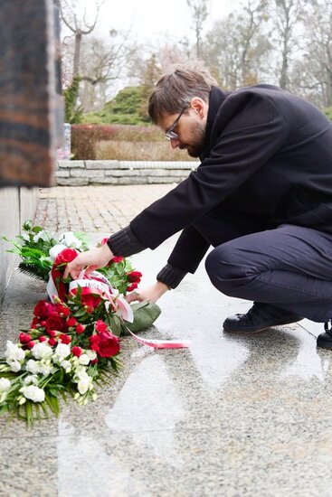 W imieniu #IPNBydgoszcz kwiaty pod pomnikiem Marszałka złożył Marcin Pietruszewski. Pamięć o twórcy niepodległej Polski to nasz obowiązek i wyraz szacunku dla historii. Cześć Jego pamięci!